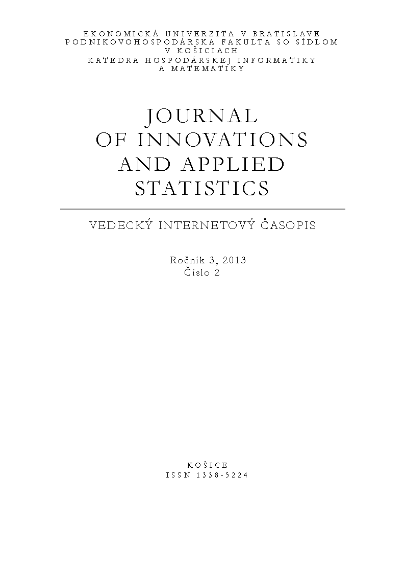 Názov Journal of innovations and applied statistics [elektronický zdroj] : vedecký internetový časopis Vydavateľské údaje Košice : Katedra hospodárskej informatiky a matematiky PHF EU ISSN 1338-5224 Roč., číslo Roč. 3, č. 2 (2013) Druh dokumentu elektronické časopisy Jazyk dokumentu slovenčina Krajina vydania Slovenská republika Báza dát PERIODIKÁ - Prijaté čísla Odkazy - PERIODIKÁ - Súborný záznam periodika (3) - PUBLIKAČNÁ ČINNOSŤ (4) - ČLÁNKY
