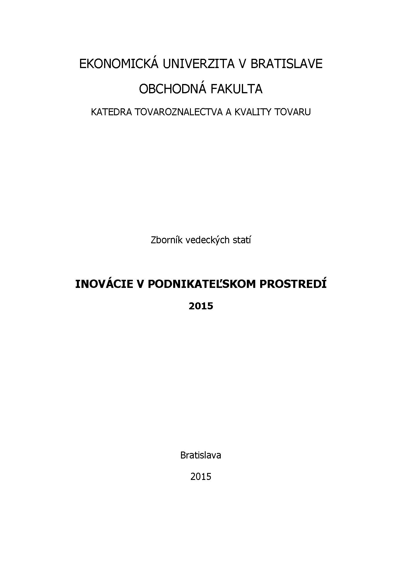 Názov Inovácie v podnikateľskom prostredí 2015 [elektronický zdroj] : zborník vedeckých statí Autorské údaje zborník zostavili: Alena Dudeková, Ivan Hlavatý, recenzenti: Ľubica Knošková, Martina Leščáková Ďalší autori Dudeková Alena (Zostavovateľ / Kompilátor) EUBOBFKTK - Katedra tovaroznalectva a kvality tovaru OBF - zrušená Hlavatý Ivan (Zostavovateľ / Kompilátor) EUBOBFKIO - Katedra informatiky obchodných firiem OBF - zrušená Knošková Ľubica (Recenzent) EUBOBFKTK - Katedra tovaroznalectva a kvality tovaru OBF - zrušená Leščáková Martina (Recenzent) Korporácia Obchodná fakulta EU . Katedra tovaroznalectva a kvality tovaru Vydavateľské údaje Bratislava : Vydavateľstvo EKONÓM , 2015. - CD-ROM [97 s., 7,32 AH] Vydanie 1. vyd. ISBN 978-80-225-4224-1 Druh dokumentu zborníky Jazyk dokumentu slovenčina Krajina vydania Slovenská republika Systematika 658.5 - Organizácia výroby. Plánovanie výroby. Konštrukcia. Kontrola výroby Heslá inovácia * prostredie podnikateľské * logistika * obchod medzinárodný * investície priame zahraničné * značky výrobkov * známky ochranné * správanie spotrebiteľa * dovoz * vývoz Kategória EPC Redakčné a zostavovateľské práce knižného charakteru (bibliografie, encyklopédie, katalógy, slovníky, zborníky...) Báza dát PUBLIKAČNÁ ČINNOSŤ Počet ex. 1, z toho voľných 0, prezenčne 1 Odkazy (15) - PUBLIKAČNÁ ČINNOSŤ Signatúra 889860 Archív EPC E15 01720-001, originál dokumentu