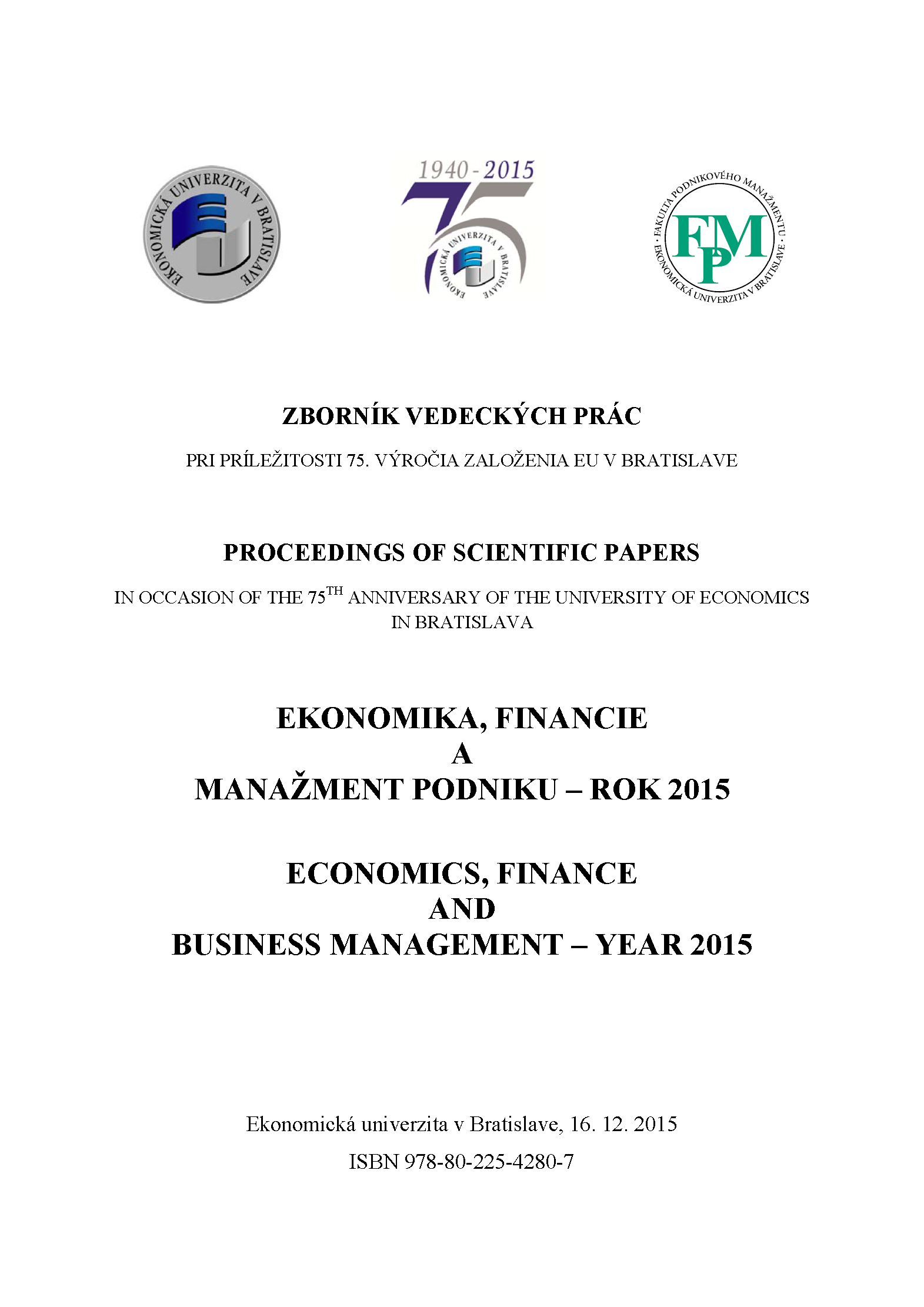 Názov Ekonomika, financie a manažment podniku - rok 2015 [elektronický zdroj] : zborník vedeckých prác pri príležitosti 75. výročia založenia Ekonomickej univerzity v Bratislave Súbežný názov Economics, finance and business management - year 2015 : proceeding of scientific papers in occasion of the 75th anniversary of the University of Economics in Bratislava Autorské údaje zostavovatelia/assembler: Miroslav Tóth, Peter Markovič, vedeckí recenzenti/scientific reviewers: Miroslav Grznár, Milan Rajňák Ďalší autori Tóth Miroslav (Zostavovateľ / Kompilátor) EUBFPMKPO - Katedra podnikovohospodárska FPM Markovič Peter (Zostavovateľ / Kompilátor) EUBFPMKPF - Katedra podnikových financií FPM Grznár Miroslav (Recenzent) EUBFPMKPM - Katedra manažmentu FPM Rajňák Milan (Recenzent) Korporácia Ekonomická univerzita v Bratislave . Fakulta podnikového manažmentu Vydavateľské údaje Bratislava : Vydavateľstvo EKONÓM , 2016. - CD-ROM [800 s., 30 AH] Vydanie 1. vyd. ISBN 978-80-225-4280-7 Druh dokumentu zborníky Jazyk dokumentu slovenčina, angličtina Krajina vydania Slovenská republika Systematika 658.15 - Finančné hospodárstvo v podniku Heslá hospodárstvo podnikové * financie podnikové * riadenie podnikové Kategória EPC Redakčné a zostavovateľské práce knižného charakteru (bibliografie, encyklopédie, katalógy, slovníky, zborníky...) Báza dát PUBLIKAČNÁ ČINNOSŤ Počet ex. 1, z toho voľných 0, prezenčne 1 Odkazy (111) - PUBLIKAČNÁ ČINNOSŤ Signatúra 890955 Archív EPC E16 00960-001, originál dokumentu