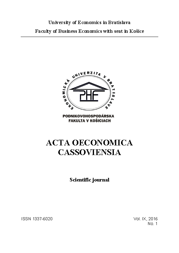 Názov Acta oeconomica Cassoviensia : scientific journal Vydavateľské údaje Košice : PHF EU Košice ISSN 1337-6020 Roč., číslo Roč. 9, č. 1 (2016) Druh dokumentu časopisy Jazyk dokumentu angličtina Krajina vydania Slovenská republika Báza dát PERIODIKÁ - Prijaté čísla Odkazy - PERIODIKÁ - Súborný záznam periodika - PERIODIKÁ - Zviazaný ročník periodika (3) - PUBLIKAČNÁ ČINNOSŤ