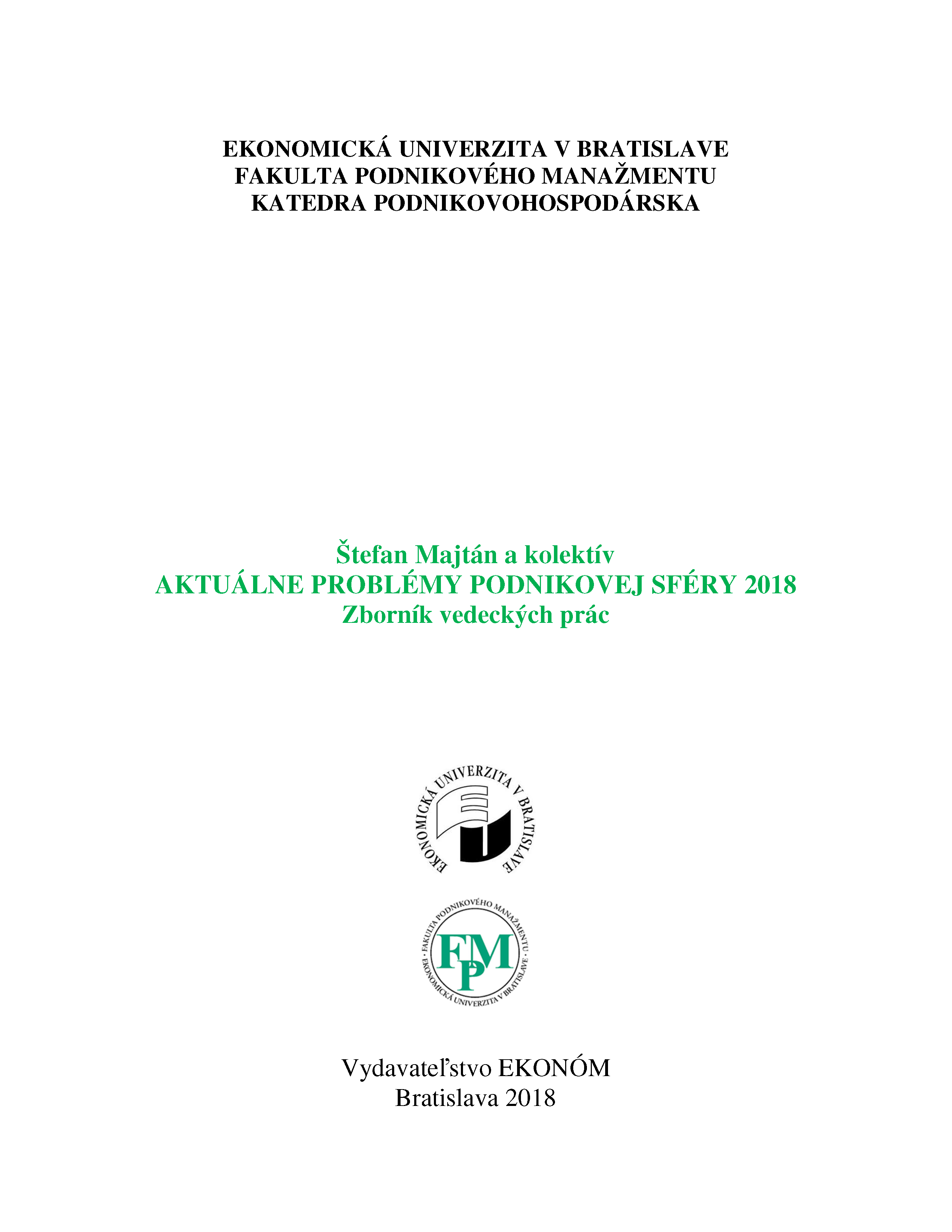 1. Názov Aktuálne problémy podnikovej sféry 2018 [elektronický zdroj] : zborník vedeckých prác
