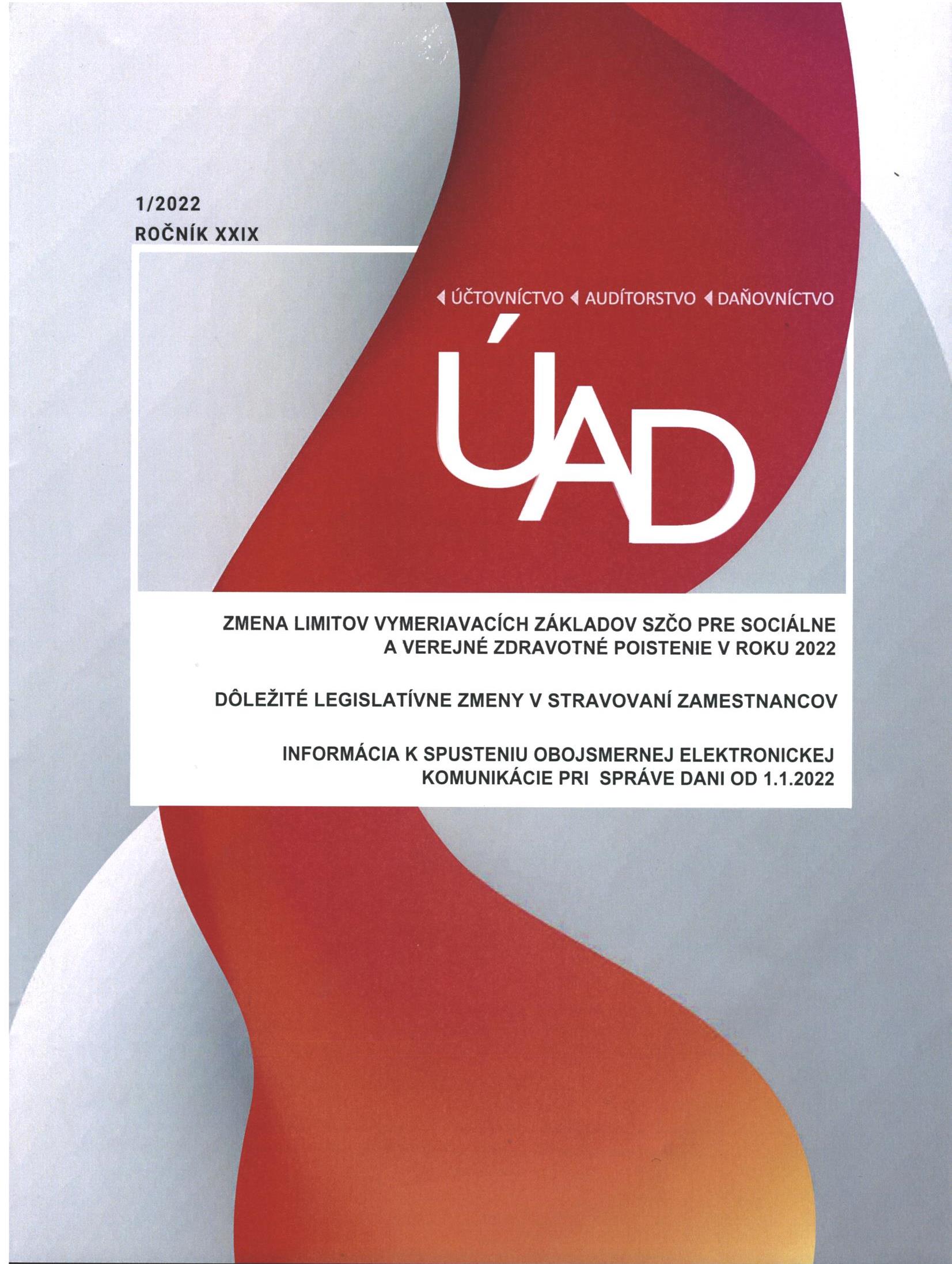 Názov Účtovníctvo - audítorstvo - daňovníctvo : v teórii a praxi Súbežný názov Accounting. Audit. Taxation: in theory and praxis Vydavateľské údaje Bratislava : Slovenská komora certifikovaných účtovníkov ISSN 1335-2024 Roč., číslo Roč. 30, č. 1 (2022) Status periodika prijaté (28.01.2022) Druh dokumentu časopisy Jazyk dokumentu slovenčina Krajina vydania Slovenská republika Báza dát PERIODIKÁ - Prijaté čísla Počet ex. 2, z toho voľných 0, prezenčne 2 Odkazy - PERIODIKÁ - Súborný záznam periodika (2) - PUBLIKAČNÁ ČINNOSŤ (1) - ČLÁNKY