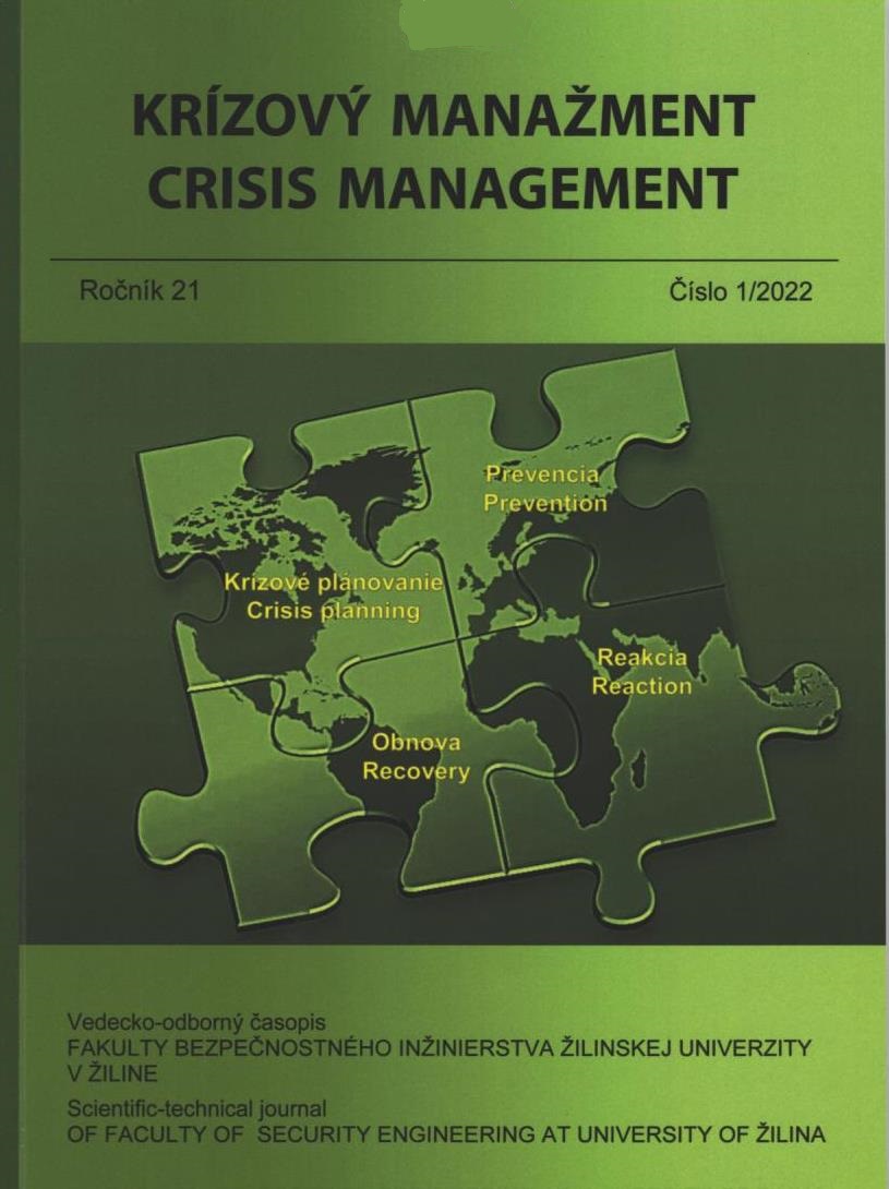 Názov Krízový manažment : vedecko-odborný časopis Fakulty bezpečnostného inžinierstva Žilinskej univerzity v Žiline : časopis pre pracovníkov zaoberajúcich sa otázkami bezpečnosti, rizík, krízovým manažmentom a krízovým plánovaním Súbežný názov Crisis Management = Scientific-Technical Journal of Fakulty of Security Engineering at University of Žilina in Žilina Vydavateľské údaje Žilina : Fakulta bezpečnostného inžinierstva Žilinskej univerzity v Žiline ISSN 1336-0019 Roč., číslo Roč. 21, č. 1 (2022) Status periodika prijaté (01.07.2022) Druh dokumentu časopisy Jazyk dokumentu slovenčina Krajina vydania Slovenská republika Báza dát PERIODIKÁ - Prijaté čísla Počet ex. 1, z toho voľných 0, prezenčne 1 Odkazy - PERIODIKÁ - Súborný záznam periodika (4) - ČLÁNKY