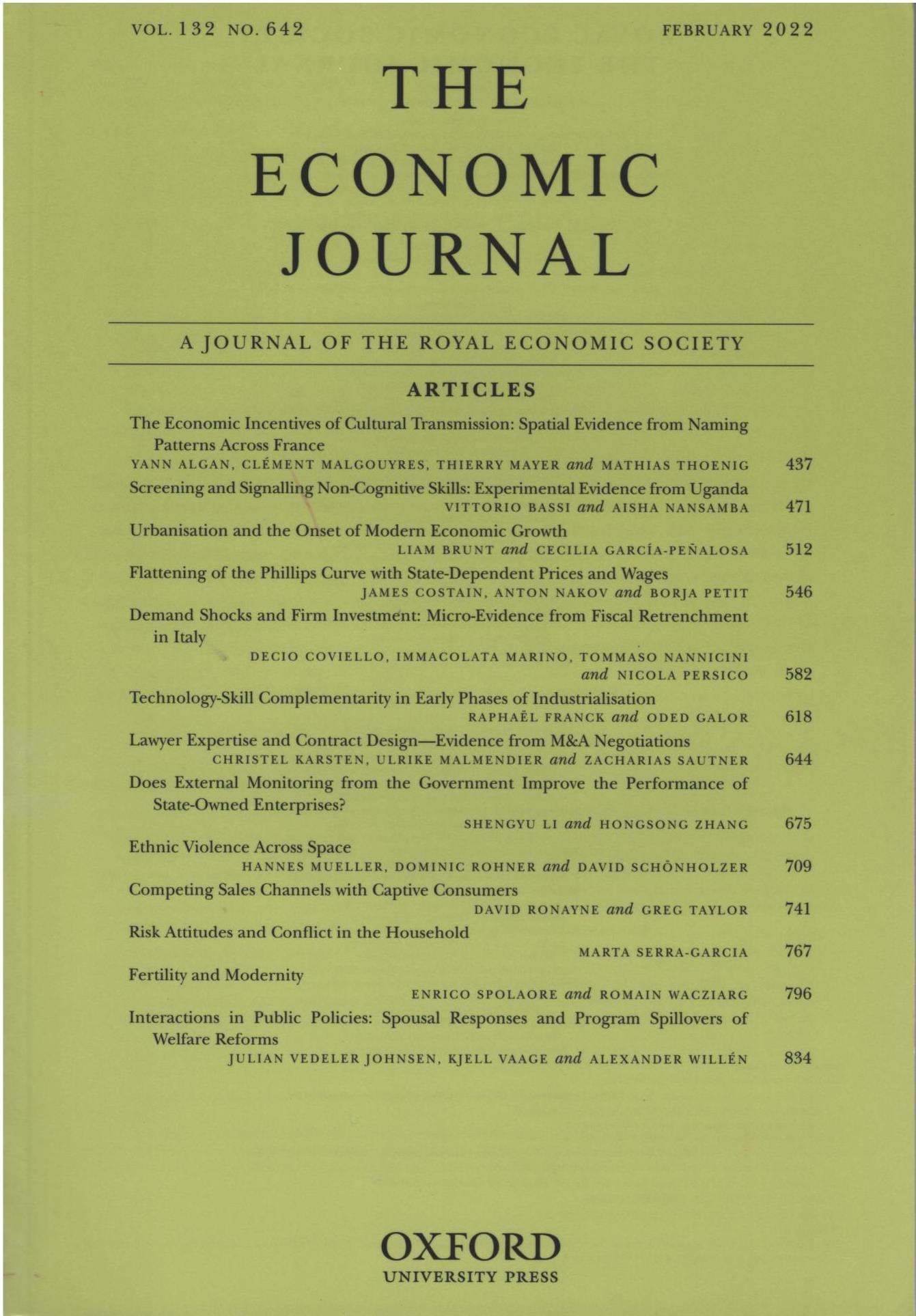 Názov The Economic Journal : The Journal of the Royal Economic Society Vydavateľské údaje London : Royal Economic Society ISSN 0013-0133 Roč., číslo Vol. 132, no. 642 (February) Status periodika prijaté (22.07.2022) Druh dokumentu časopisy Jazyk dokumentu angličtina Krajina vydania Veľká Británia Báza dát PERIODIKÁ - Prijaté čísla Počet ex. 1, z toho voľných 0, prezenčne 1 Odkazy - PERIODIKÁ - Súborný záznam periodika
