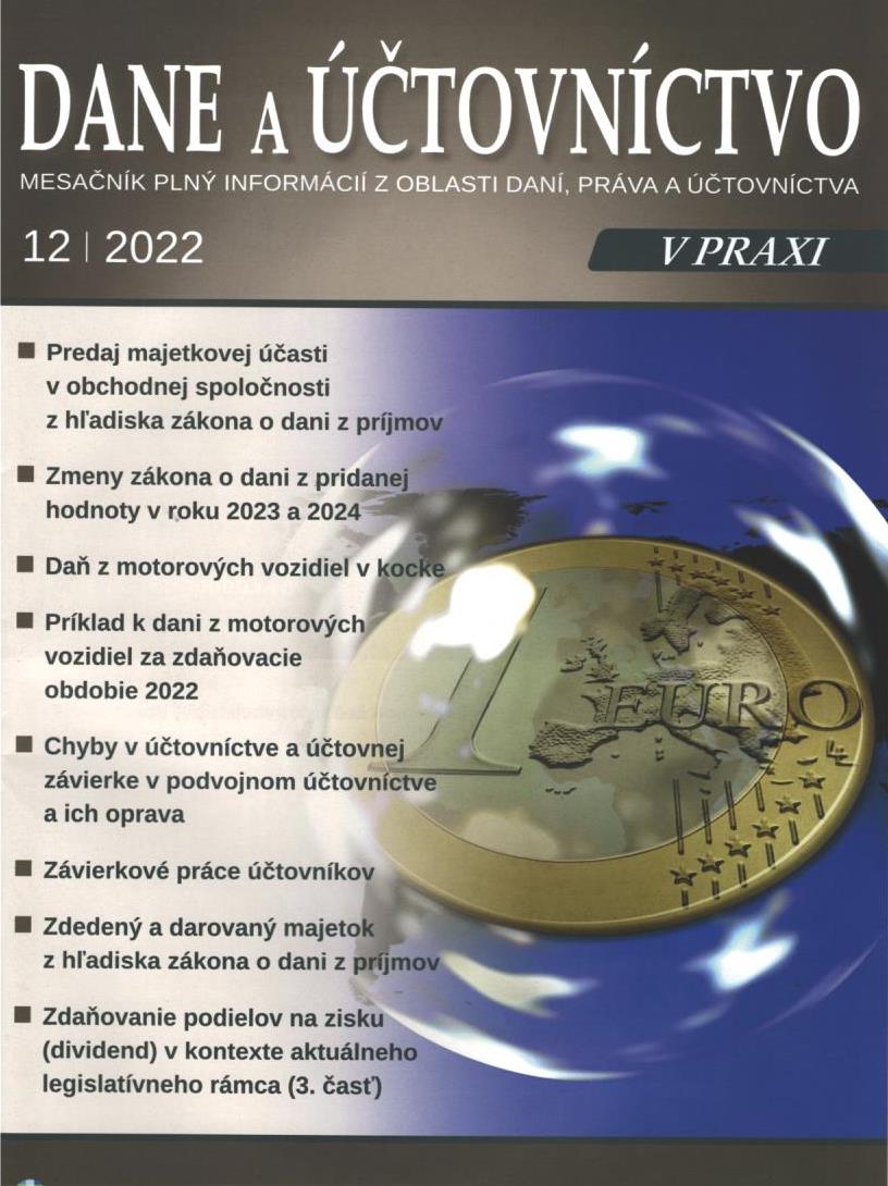 Názov Dane a účtovníctvo v praxi : mesačník plný informácií z oblasti daní, práva a účtovníctva Vydavateľské údaje Bratislava : Wolters Kluwer ISSN 1335-7034 Roč., číslo Roč. 27, č. 12 (2022) Status periodika prijaté (20.12.2022) Druh dokumentu časopisy Jazyk dokumentu slovenčina Krajina vydania Slovenská republika Báza dát PERIODIKÁ - Prijaté čísla Počet ex. 2, z toho voľných 0, prezenčne 2 Odkazy - PERIODIKÁ - Súborný záznam periodika (5) - ČLÁNKY
