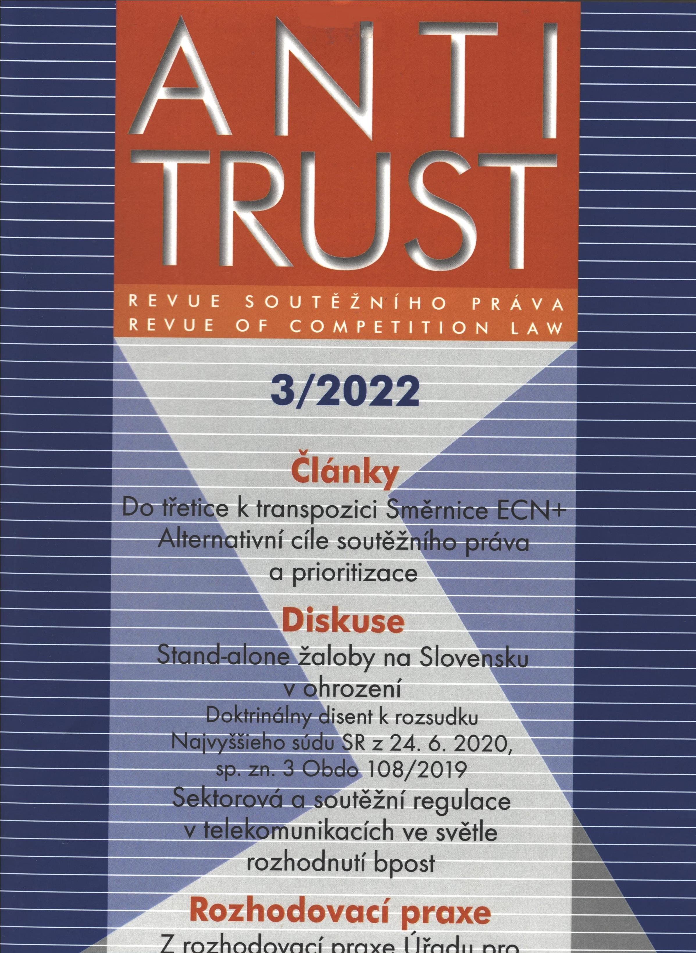 Názov Antitrust : časopis pro právo hospodářské soutěže a související oblasti : revue soutěžního práva = revue of competition law Vydavateľské údaje Praha : Sdružení KAIROS ISSN 1804-1183 Roč., číslo Č. 3 (2022) Status periodika prijaté (04.01.2023) Druh dokumentu časopisy Jazyk dokumentu čeština Krajina vydania Česká republika Báza dát PERIODIKÁ - Prijaté čísla Počet ex. 1, z toho voľných 0, prezenčne 1 Odkazy - PERIODIKÁ - Súborný záznam periodika (4) - ČLÁNKY