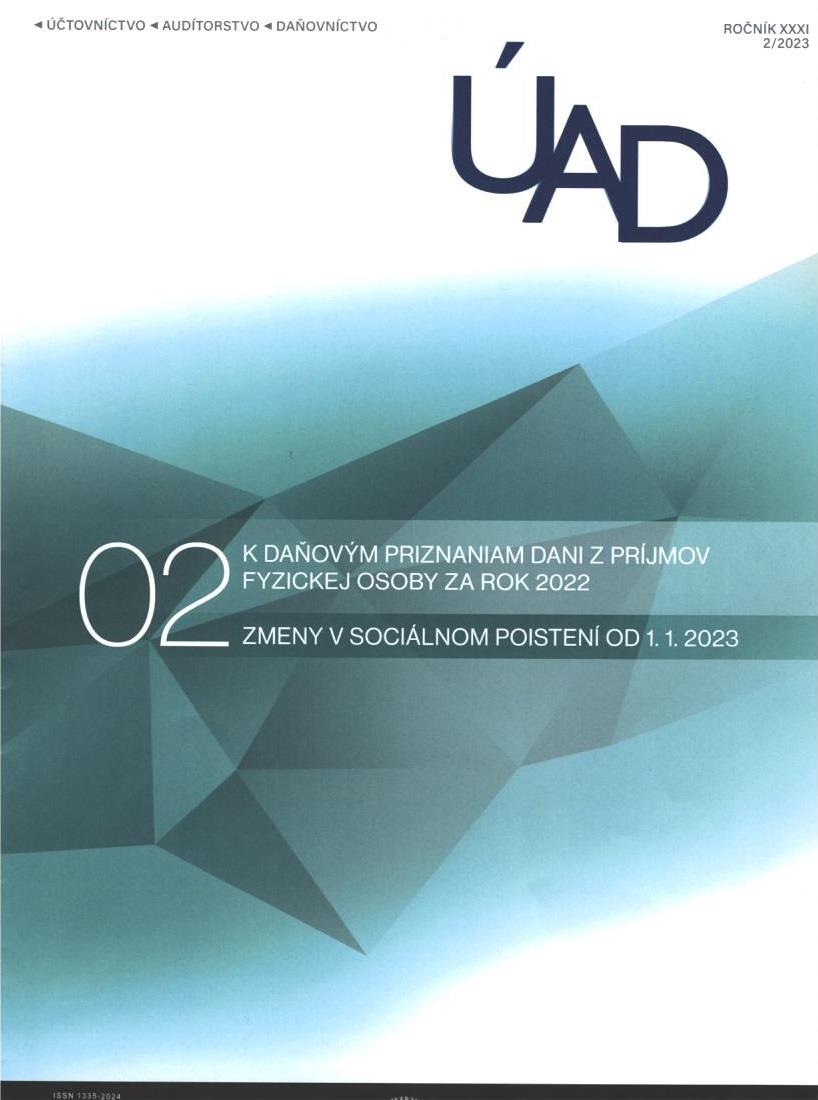 Názov Účtovníctvo - audítorstvo - daňovníctvo : v teórii a praxi Súbežný názov Accounting. Audit. Taxation: in theory and praxis Vydavateľské údaje Bratislava : Slovenská komora certifikovaných účtovníkov ISSN 1335-2024 Roč., číslo Roč. 31, č. 2 (2023) Status periodika prijaté (01.03.2023) Druh dokumentu časopisy Jazyk dokumentu slovenčina Krajina vydania Slovenská republika Báza dát PERIODIKÁ - Prijaté čísla Počet ex. 2, z toho voľných 0, prezenčne 2 Odkazy - PERIODIKÁ - Súborný záznam periodika (2) - ČLÁNKY