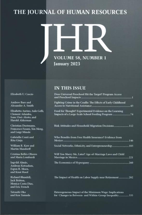 Názov Journal of Human Resources Vydavateľské údaje Madison : University of Wisconsin Press ISSN 0022-166X Roč., číslo Vol. 58, no. 1 (January 2023) Status periodika prijaté (10.03.2023) Druh dokumentu časopisy Jazyk dokumentu angličtina Krajina vydania Spojené štáty Báza dát PERIODIKÁ - Prijaté čísla Počet ex. 1, z toho voľných 0, prezenčne 1 Odkazy - PERIODIKÁ - Súborný záznam periodika