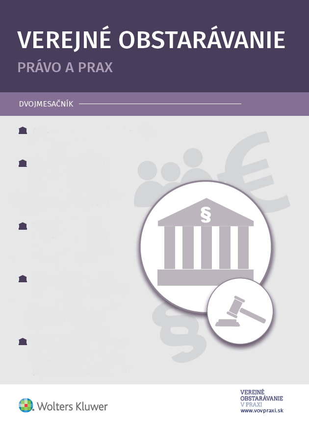 Názov Verejné obstarávanie - právo a prax : odborný dvojmesačník Vydavateľské údaje Bratislava : Wolters Kluwer SR ISSN 1339-5963 (print) , 2453-6512 (online) Poznámky Spracovaný v EKO-INDEX 2023- Číslovanie [Roč. 1, č. 1 (2021)]- Periodicita 6x ročne Roky odberu 2023- Doba uchovávania uchovávame trvale vo fonde SEK Druh dokumentu časopisy Jazyk dokumentu slovenčina Krajina vydania Slovenská republika Systematika 347.7 - Obchodné právo Heslá obstarávanie verejné * rozpočty verejné * súťaž hospodárska * právo súťažné * ochrana súťaže hospodárskej Anotácia Informácie z oblasti verejného obstarávania, eurofondov, čerpania dotácií a ďalších relevantných poznatkov z praxe pre podnikateľskú, aj nepodnikateľskú sféru. URL https://www.vovpraxi.sk/ Báza dát PERIODIKÁ - Súborný záznam periodika Odkazy (97) - ČLÁNKY Odkazy Súborný záznam: použite odkaz na záznam čísla alebo zväzku Čísla 2025: 1, 2, 3, 4, 5, 6 2024: 1, 2, 3, 4, 5, 6 2023: 1, 2, 3, 4, 5, 6