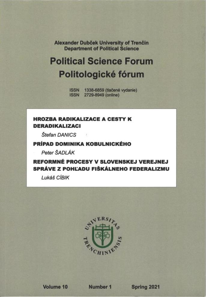 Názov Politologické fórum Súbežný názov Political Science Forum Vydavateľské údaje Trenčín : Trenčianska univerzita Alexandra Dubčeka v Trenčíne ISSN 1338-6859 Roč., číslo Vol. 10, no. 1 (2021) Status periodika prijaté (13.04.2023) Druh dokumentu časopisy Jazyk dokumentu slovenčina Krajina vydania Slovenská republika Báza dát PERIODIKÁ - Prijaté čísla Počet ex. 1, z toho voľných 0, prezenčne 1 Odkazy - PERIODIKÁ - Súborný záznam periodika - PERIODIKÁ - Zviazaný ročník periodika