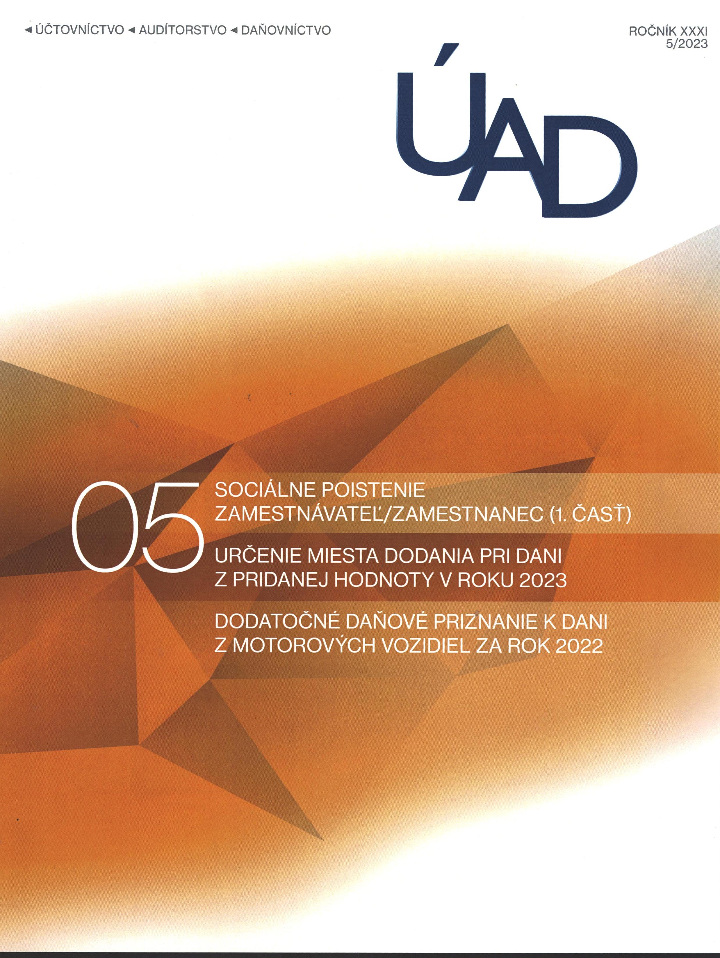 Názov Účtovníctvo - audítorstvo - daňovníctvo : v teórii a praxi Súbežný názov Accounting. Audit. Taxation: in theory and praxis Vydavateľské údaje Bratislava : Slovenská komora certifikovaných účtovníkov ISSN 1335-2024 Roč., číslo Roč. 31, č. 5 (2023) Status periodika prijaté (01.06.2023) Druh dokumentu časopisy Jazyk dokumentu slovenčina Krajina vydania Slovenská republika Báza dát PERIODIKÁ - Prijaté čísla Počet ex. 2, z toho voľných 0, prezenčne 2 Odkazy - PERIODIKÁ - Súborný záznam periodika (1) - PUBLIKAČNÁ ČINNOSŤ (1) - ČLÁNKY