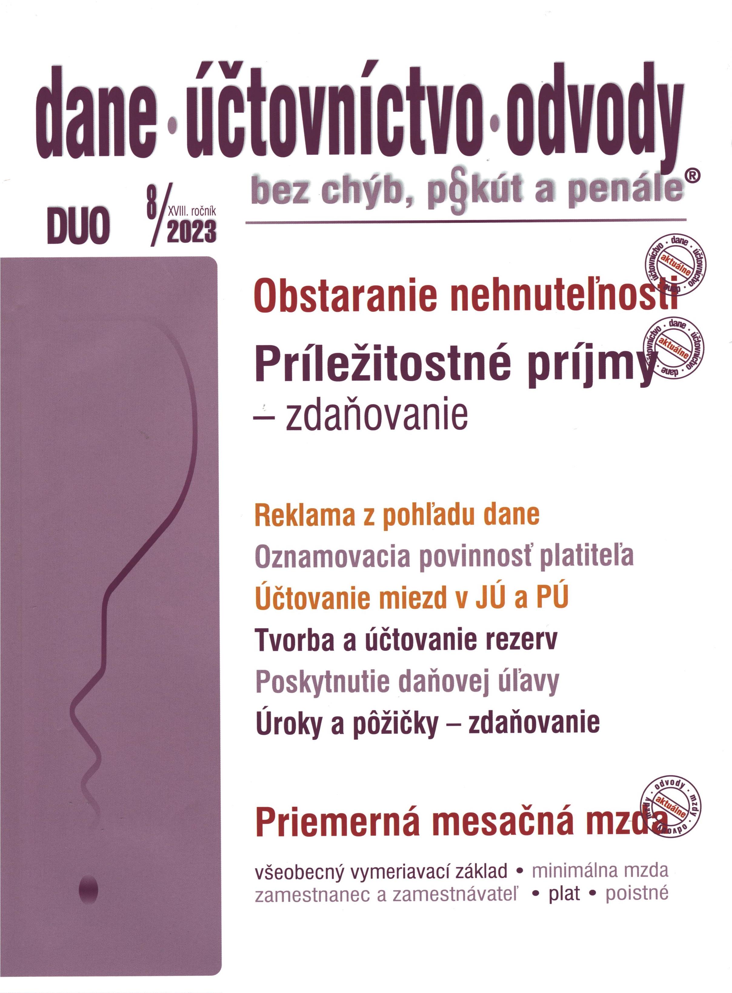 Názov Dane - účtovníctvo - odvody : bez chýb, pokút a penále Vydavateľské údaje Žilina : Poradca ISSN 1336-7986 Roč., číslo Roč. 18, č. 8 (2023) Status periodika prijaté (03.07.2023) Druh dokumentu časopisy Jazyk dokumentu slovenčina Krajina vydania Slovenská republika Báza dát PERIODIKÁ - Prijaté čísla Počet ex. 2, z toho voľných 0, prezenčne 2 Odkazy - PERIODIKÁ - Súborný záznam periodika