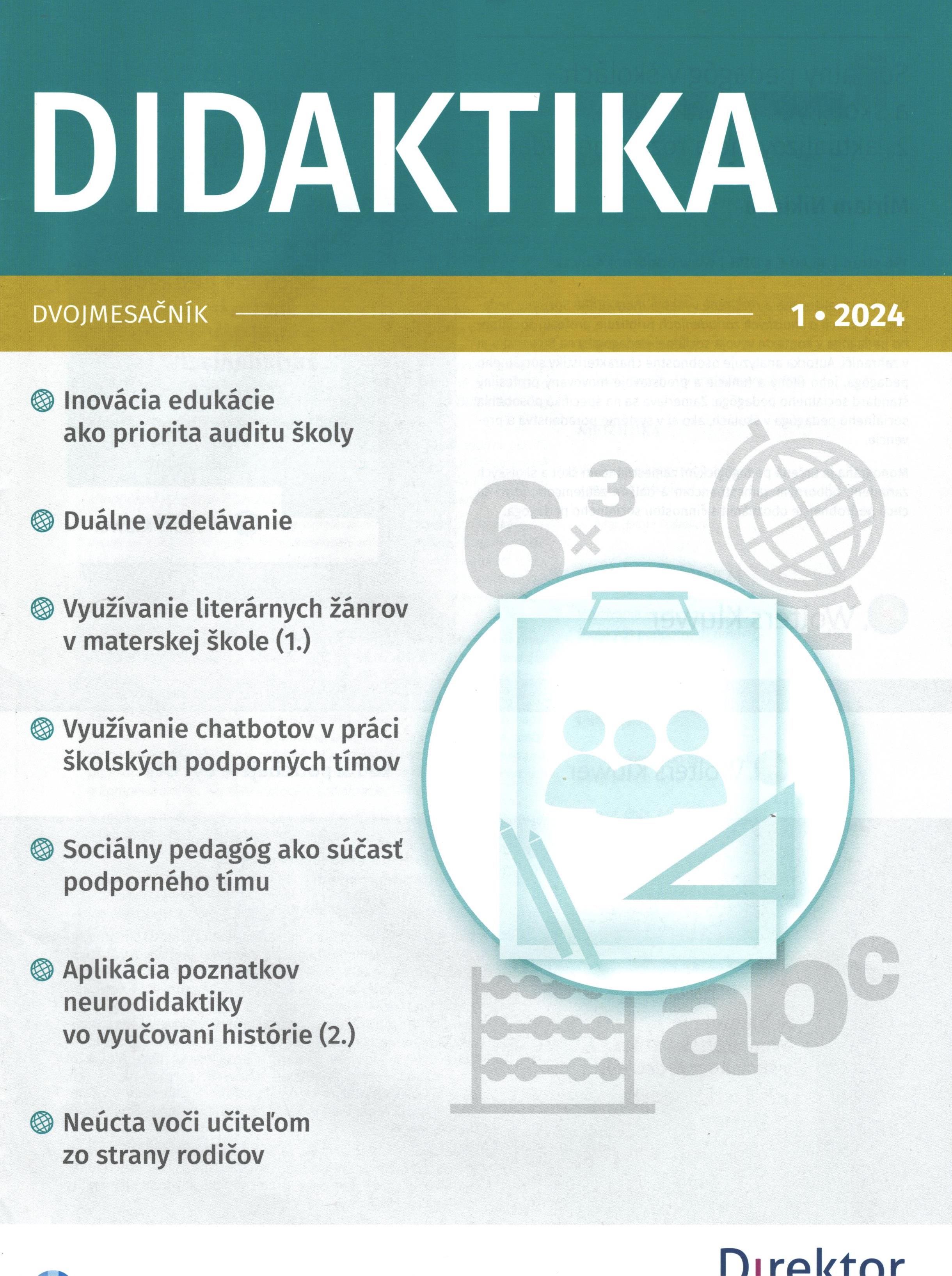 Názov Didaktika : [odborný dvojmesačník] Vydavateľské údaje Bratislava : Wolters Kluwer SR ISSN 1338-2845 Roč., číslo Roč. 5, č. 1 (2024) Status periodika prijaté (02.02.2024) Druh dokumentu časopisy Jazyk dokumentu slovenčina Krajina vydania Slovenská republika Báza dát PERIODIKÁ - Prijaté čísla Počet ex. 1, z toho voľných 0, prezenčne 1 Odkazy - PERIODIKÁ - Súborný záznam periodika (5) - ČLÁNKY