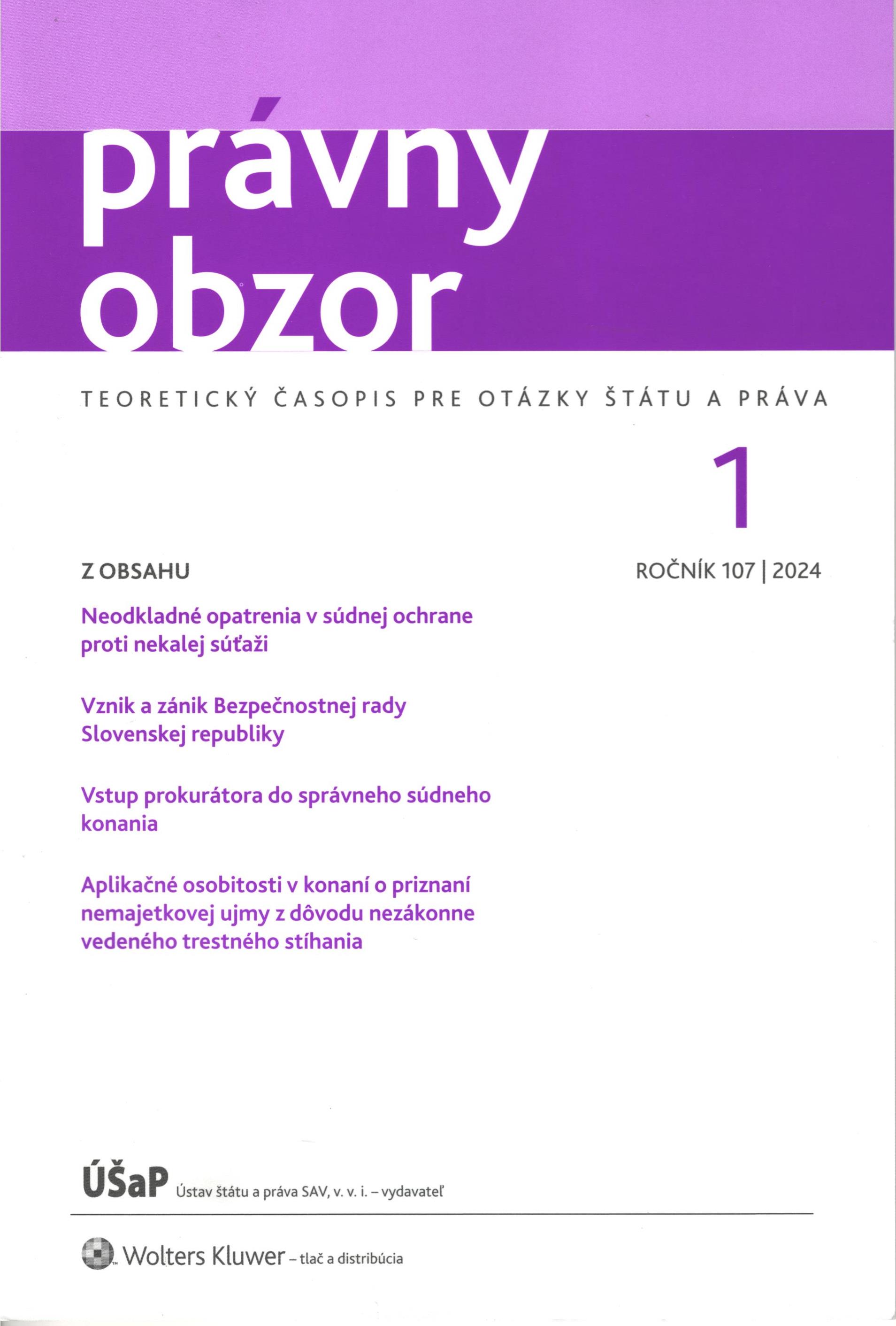 Názov Právny obzor : teoretický časopis pre otázky štátu a práva Súbežný názov Theoretical Review for Issues of State and Law Vydavateľské údaje Bratislava : Ústav štátu a práva SAV ISSN 0032-6984 Roč., číslo Roč. 107, č. 1 (2024) Status periodika prijaté (07.03.2024) Druh dokumentu časopisy Jazyk dokumentu slovenčina Krajina vydania Slovenská republika Báza dát PERIODIKÁ - Prijaté čísla Počet ex. 1, z toho voľných 0, prezenčne 1 Odkazy - PERIODIKÁ - Súborný záznam periodika (3) - ČLÁNKY
