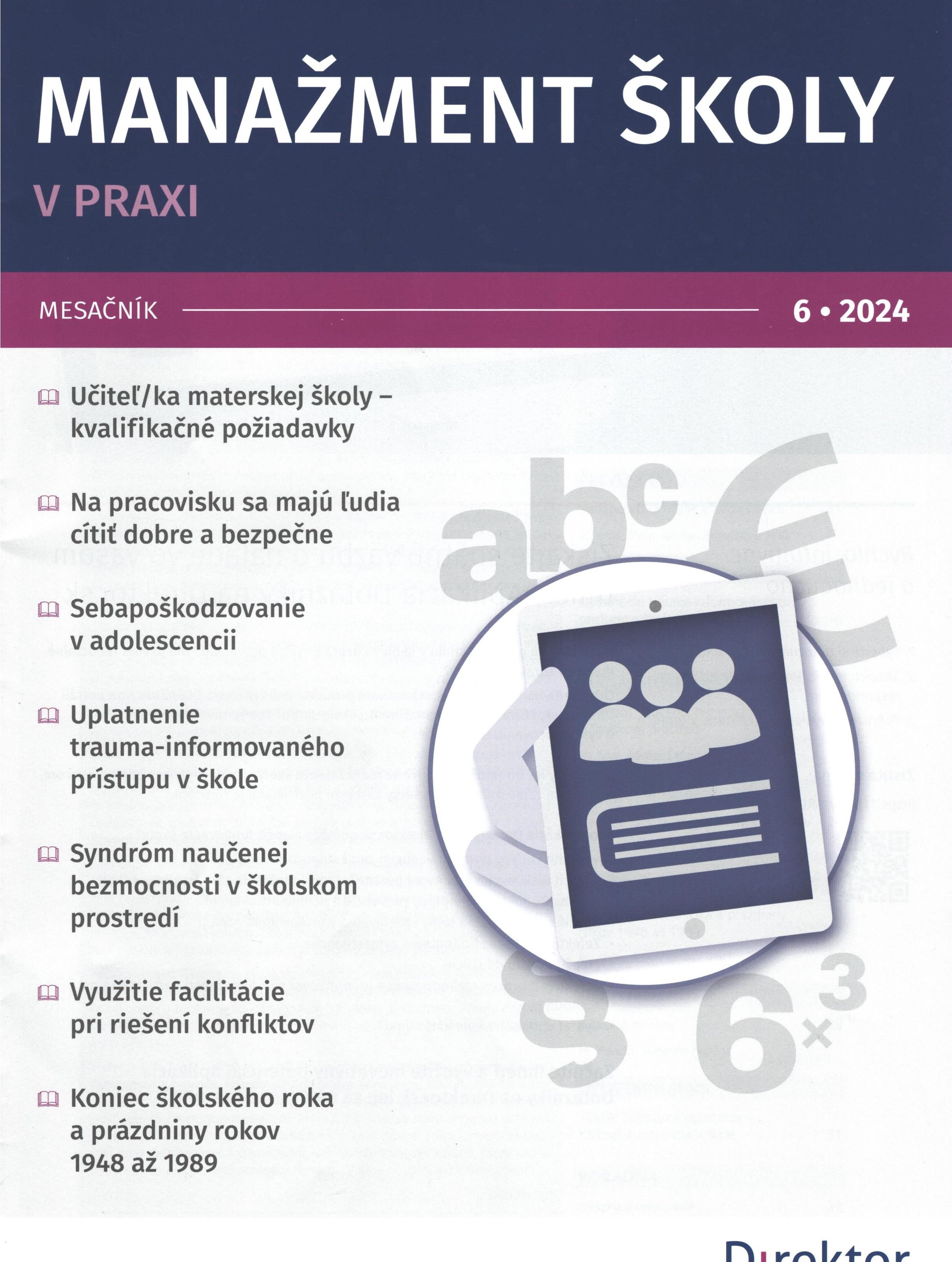 Názov Manažment školy v praxi : [odborný mesačník] Vydavateľské údaje Bratislava : Wolters Kluwer ISSN 1336-9849 Roč., číslo Roč. 19, č. 6 (2024) Status periodika prijaté (18.06.2024) Druh dokumentu časopisy Jazyk dokumentu slovenčina Krajina vydania Slovenská republika Báza dát PERIODIKÁ - Prijaté čísla Počet ex. 2, z toho voľných 0, prezenčne 2 Odkazy - PERIODIKÁ - Súborný záznam periodika (3) - ČLÁNKY