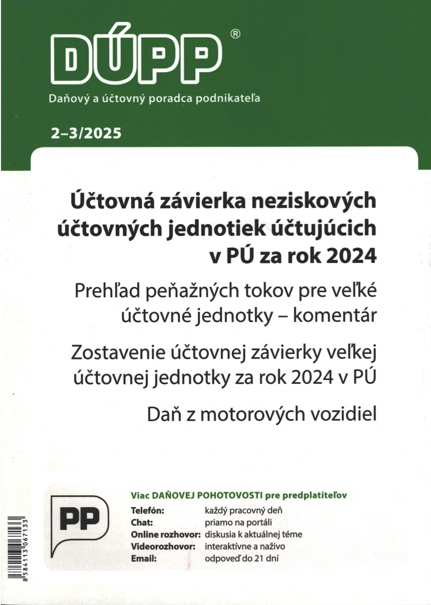 Názov Daňový a účtovný poradca podnikateľa Vydavateľské údaje Žilina : Poradca podnikateľa ISSN 1335-0897 Roč., číslo Roč. 30, č. 2-3 (2025) Status periodika prijaté (08.01.2025) Druh dokumentu časopisy Jazyk dokumentu slovenčina Krajina vydania Slovenská republika Báza dát PERIODIKÁ - Prijaté čísla Počet ex. 2, z toho voľných 0, prezenčne 2 Odkazy - PERIODIKÁ - Súborný záznam periodika (2) - ČLÁNKY