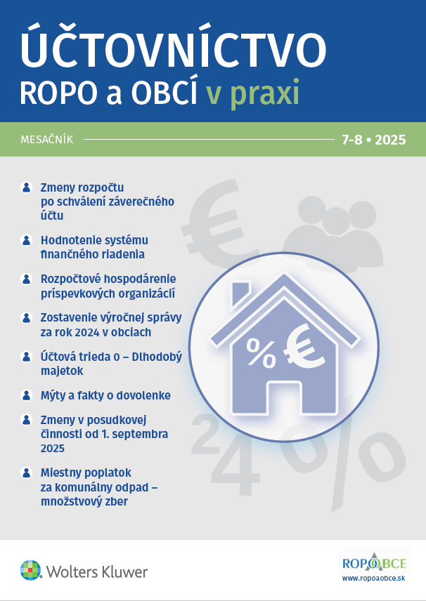 Názov Účtovníctvo ROPO a obcí v praxi : odborný mesačník Vydavateľské údaje Bratislava : Wolters Kluwer ISSN 1337-0197 Roč., číslo Roč. 20, č. 7-8 (2025) Status periodika prijaté (21.07.2025) Druh dokumentu časopisy Jazyk dokumentu slovenčina Krajina vydania Slovenská republika Báza dát PERIODIKÁ - Prijaté čísla Odkazy - PERIODIKÁ - Súborný záznam periodika (8) - ČLÁNKY