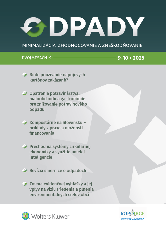 Názov Odpady : minimalizácia, zhodnocovanie a zneškodňovanie : odborný dvojmesačník Vydavateľské údaje Bratislava : Wolters Kluwer SR ISSN 1335-7808 Roč., číslo Roč. 25, č. 9-10 (2025) Status periodika prijaté (27.10.2025) Druh dokumentu časopisy Jazyk dokumentu slovenčina Krajina vydania Slovenská republika Báza dát PERIODIKÁ - Prijaté čísla Odkazy - PERIODIKÁ - Súborný záznam periodika (4) - ČLÁNKY