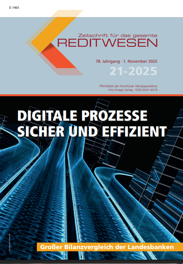 Názov Zeitschrift für das gesamte Kreditwesen : Pflichtblatt der Frankfurter Wertpapierbörse Vydavateľské údaje Frankfurt am Main : Fritz Knapp Verlag ISSN 0341-4019 Roč., číslo Jg. 78, Hf. 21 (2025) Status periodika prijaté (05.11.2025) Druh dokumentu časopisy Jazyk dokumentu nemčina Krajina vydania Nemecko Báza dát PERIODIKÁ - Prijaté čísla Odkazy - PERIODIKÁ - Súborný záznam periodika