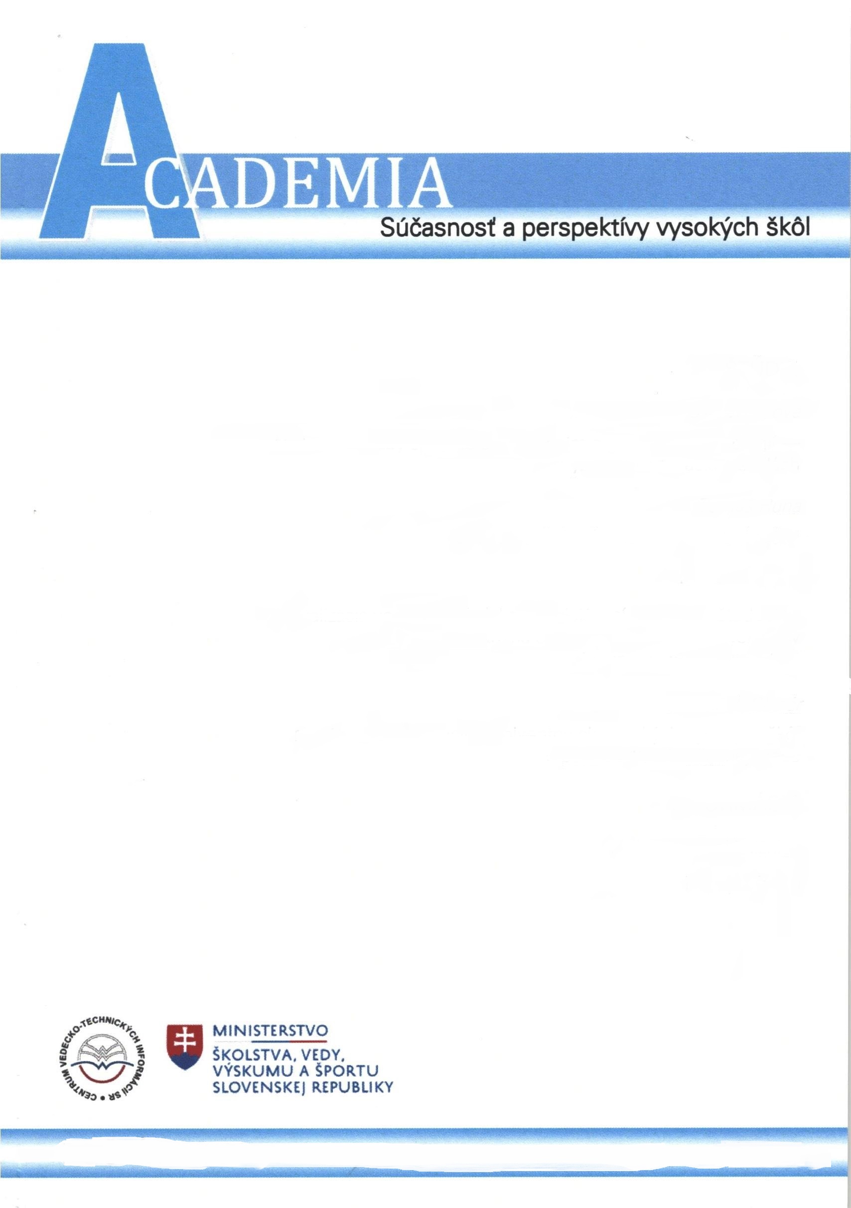 Názov ACADEMIA : súčasnosť a perspektívy vysokých škôl Vydavateľské údaje Bratislava : Centrum vedecko-technických informácií SR ISSN 1335-5864 (print) Poznámky Spracovaný v EKO-INDEX 1999- Periodicita 4x ročne Roky odberu 1997- Doba uchovávania uchovávame trvale vo fonde SEK Druh dokumentu časopisy Jazyk dokumentu slovenčina Krajina vydania Slovenská republika Systematika 378 - Vysoké školstvo. Vedecká výučba Heslá školy vysoké URL https://www.cvtisr.sk/casopisy/academia.html?page_id=9296 Báza dát PERIODIKÁ - Súborný záznam periodika Odkazy (39) - PUBLIKAČNÁ ČINNOSŤ (299) - ČLÁNKY Odkazy Súborný záznam: použite odkaz na záznam čísla alebo zväzku Čísla 2025: 1, 2-3, 4 2024: 1, 2, 3, 4 2023: 1, 2-3, 4 2022: 1, 2-3, 4 Zväzky 2021: 1-4 2020: 1-4 2019: 1-4 2018: 1-4 2017: 1-4 2016: 1-4 2015: 1-4 2014: 1-4 2013: 1-4 2012: 1-4 2011: 1-4 2010: 1-4 2009: 1-4 2008: 1-4 2007: 1-4 2006: 1-4 2005: 1-4 2004: 1-4 2003: 1-4 2002: 1-4 2001: 1-4 2000: 1-4 1999: 1-4 1998: 1-4 1997: 2-4