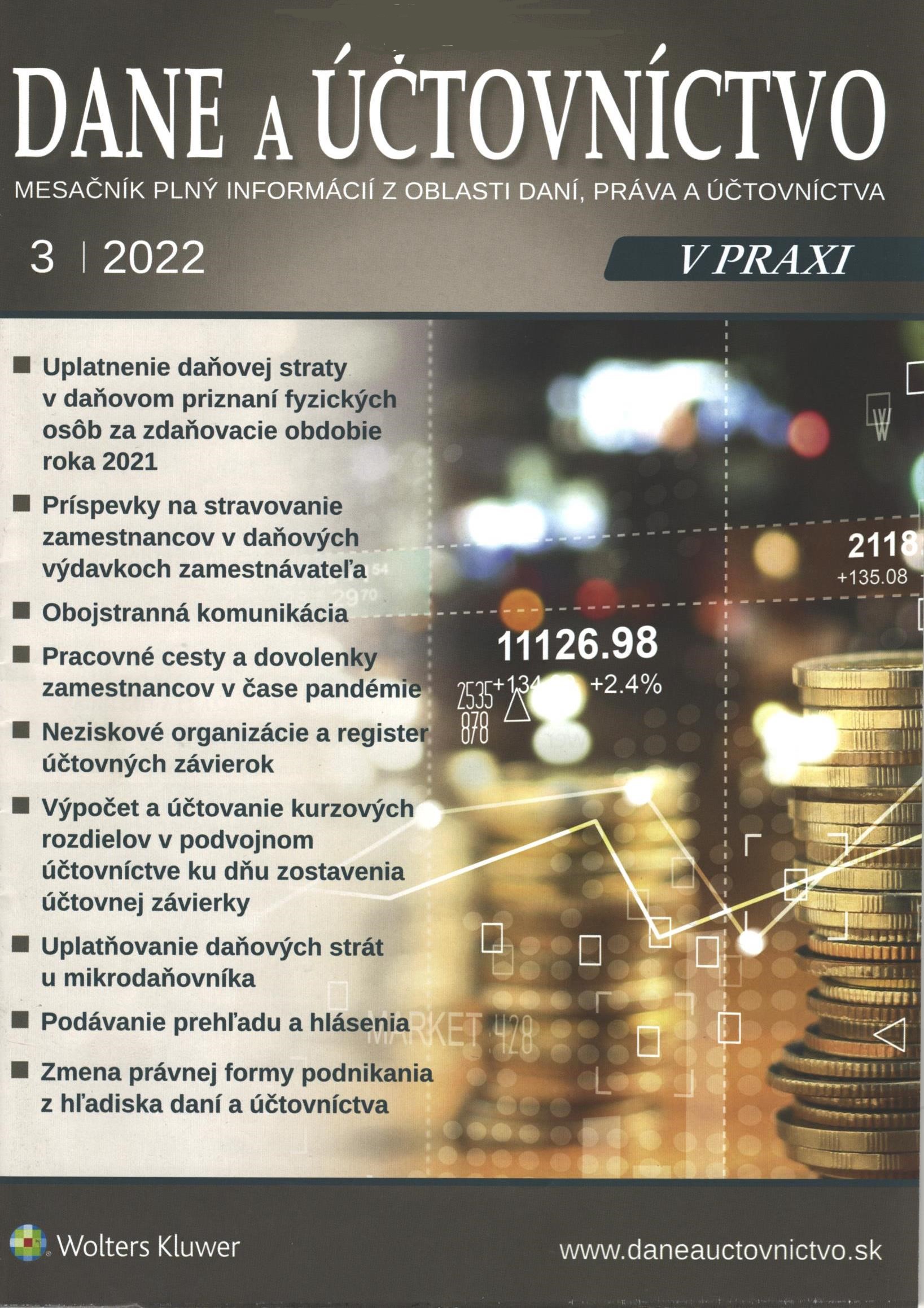 $a Dane a účtovníctvo v praxi $e mesačník plný informácií z oblasti daní, práva a účtovníctva 210 $a Bratislava $c Wolters Kluwer $d 2022 461 -1