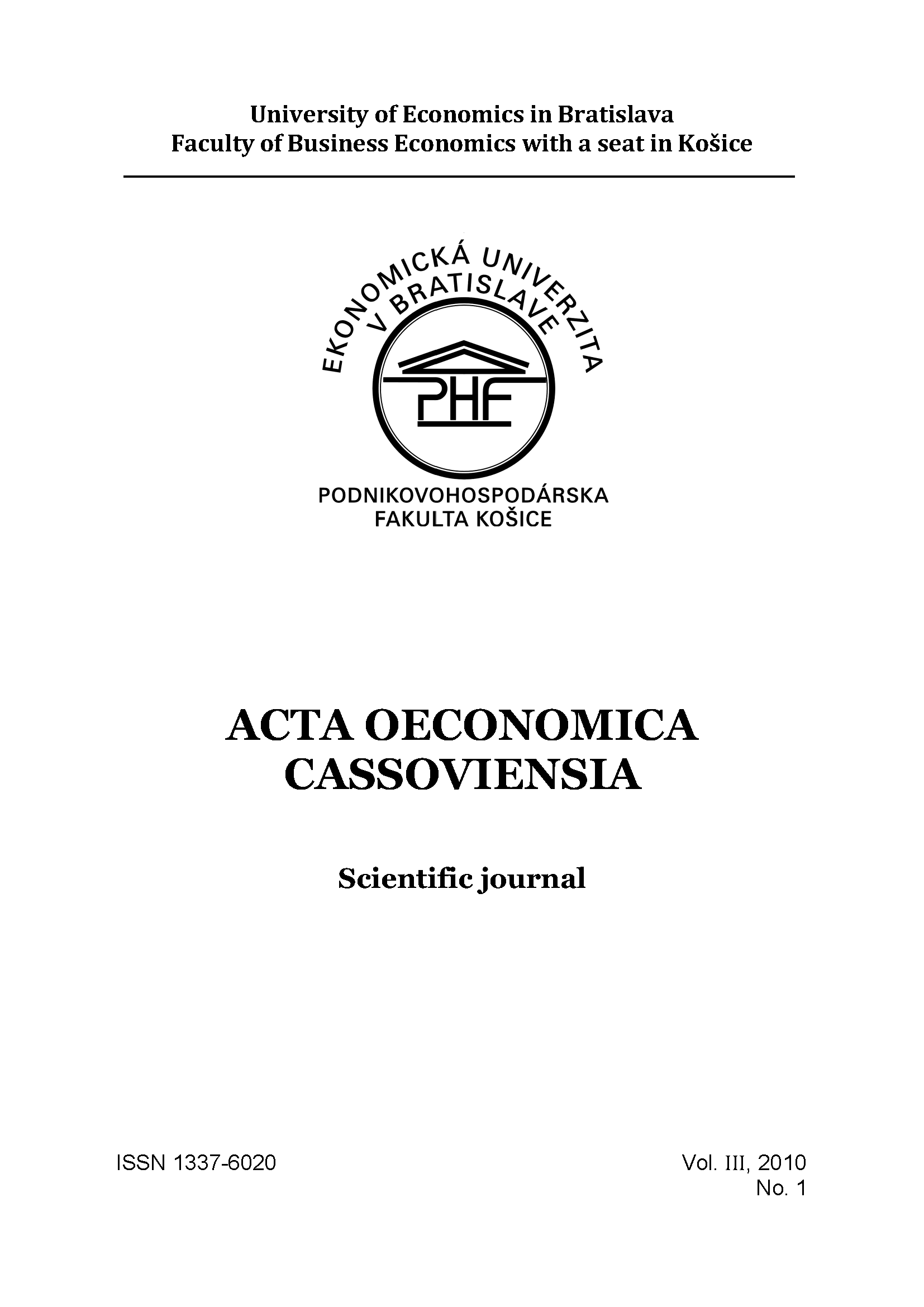 Názov Acta oeconomica Cassoviensia : scientific journal Vydavateľské údaje Košice : PHF EU Košice ISSN 1337-6020 Roč., číslo Roč. 3, č. 1 (2010) Druh dokumentu časopisy Jazyk dokumentu angličtina Krajina vydania Slovenská republika Báza dát PERIODIKÁ - Prijaté čísla Odkazy - PERIODIKÁ - Súborný záznam periodika - PERIODIKÁ - Zviazaný ročník periodika (3) - PUBLIKAČNÁ ČINNOSŤ (1) - ČLÁNKY
