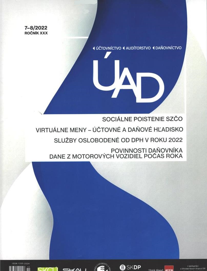 2022 ,č. 7-8. Účtovníctvo - audítorstvo - daňovníctvo : v teórii a praxi. Bratislava : Slovenská komora certifikovaných účtovníkov, 2022. ISSN 1335-2024 [Počet ex. : 2, z toho voľných 0, prezenčne 2]