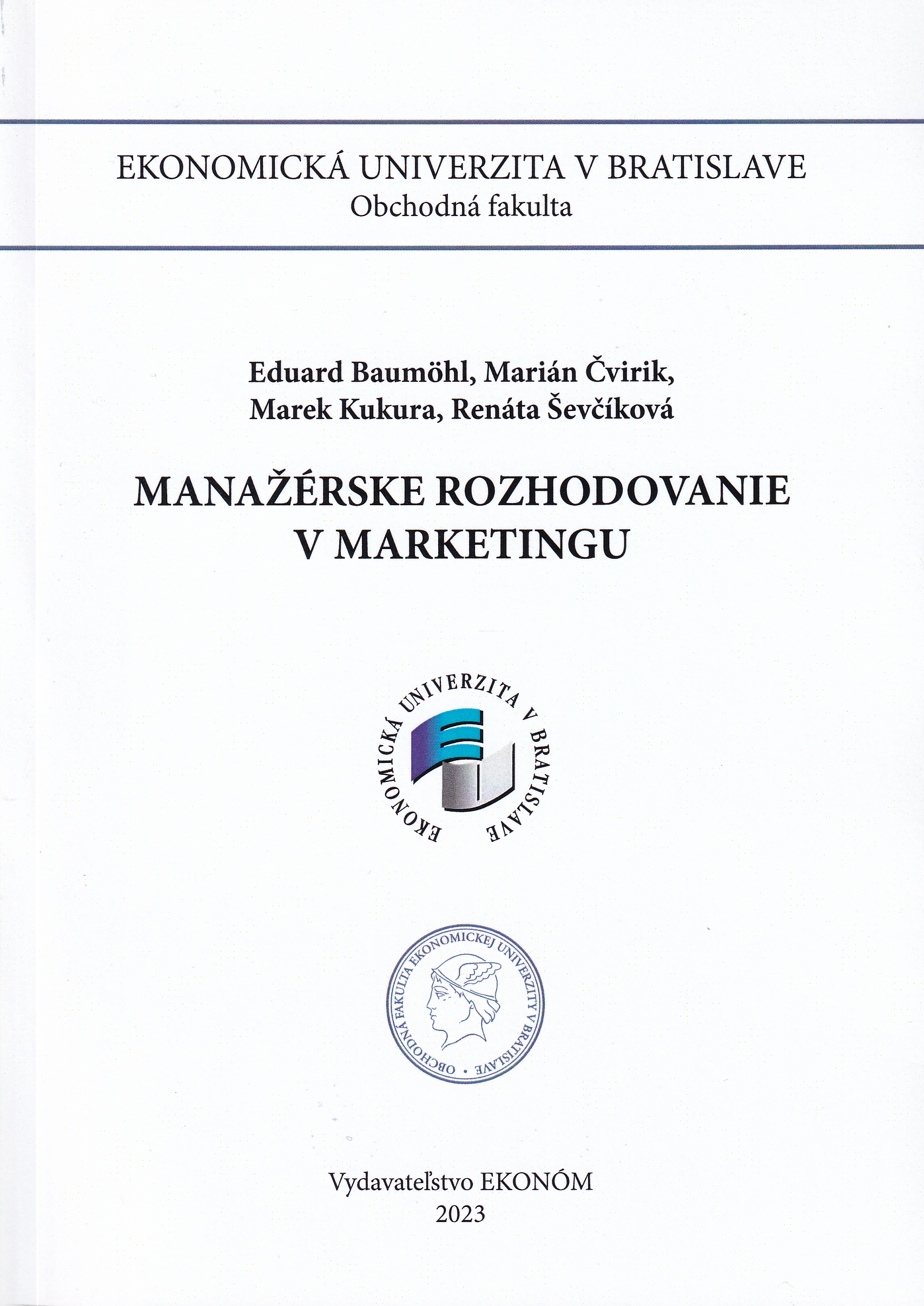 - BAUMÖHL, Eduard - ČVIRIK, Marián - KUKURA, Marek - ŠEVČÍKOVÁ, Renáta. Manažérske rozhodovanie v marketingu. Recenzenti: Radek Tahal, Aneta Vančová. 1. vydanie. Bratislava : Vydavateľstvo EKONÓM, 2023. 124 s. [7,39 AH]. ISBN 978-80-225-5060-4.
