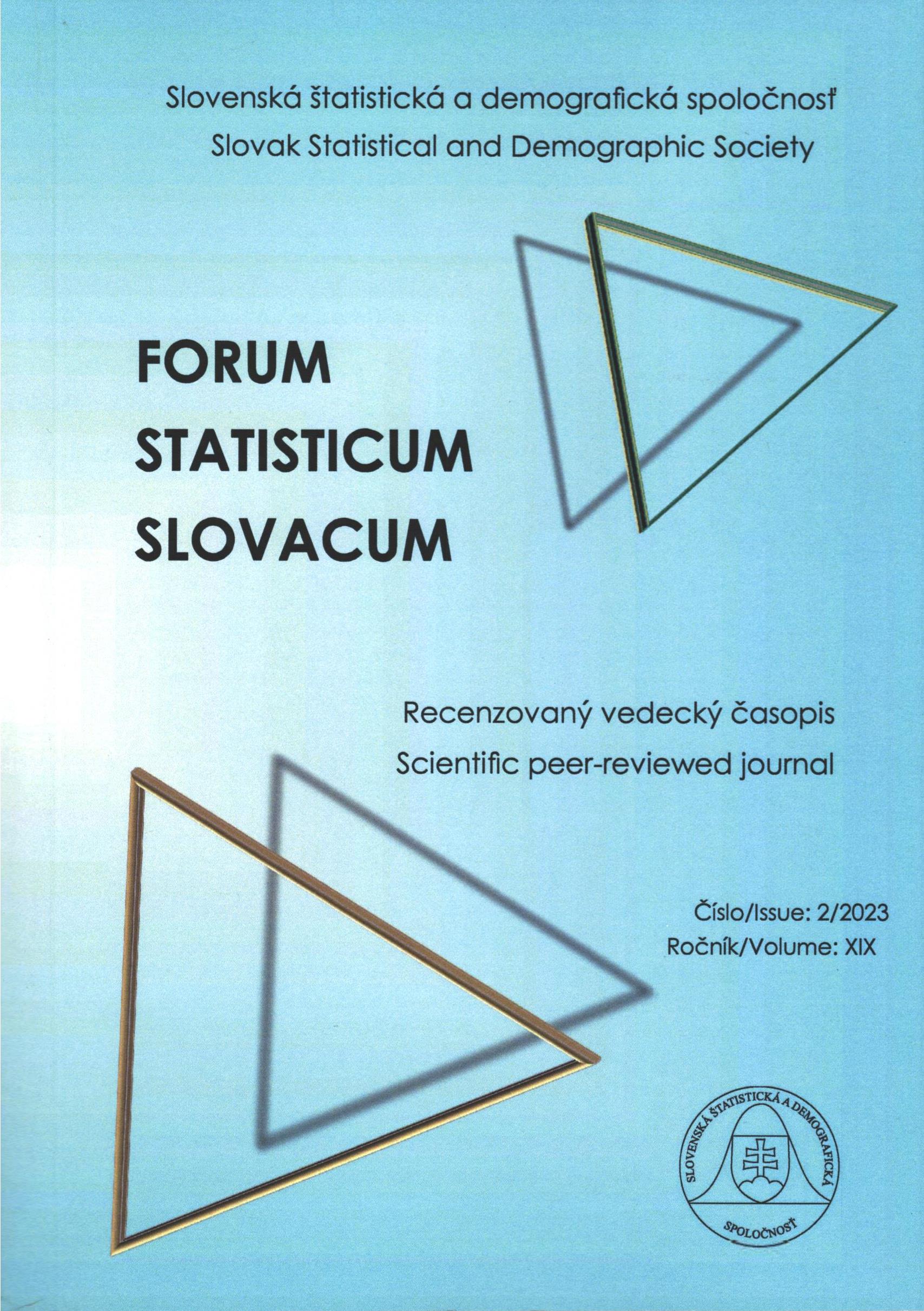 Názov Forum statisticum Slovacum : recenzovaný vedecký časopis Slovenskej štatistickej a demografickej spoločnosti Súbežný názov Forum statisticum Slovacum: Scientific peer-reviewed Journal of the Slovak Statistical and Demographic Society Vydavateľské údaje Bratislava : Slovenská štatistická a demografická spoločnosť ISSN 1336-7420 Roč., číslo Roč. 19, č. 2 (2023) Status periodika prijaté (29.02.2024) Druh dokumentu časopisy Jazyk dokumentu slovenčina Krajina vydania Slovenská republika Báza dát PERIODIKÁ - Prijaté čísla Počet ex. 1, z toho voľných 0, prezenčne 1 Odkazy - PERIODIKÁ - Súborný záznam periodika (4) - ČLÁNKY