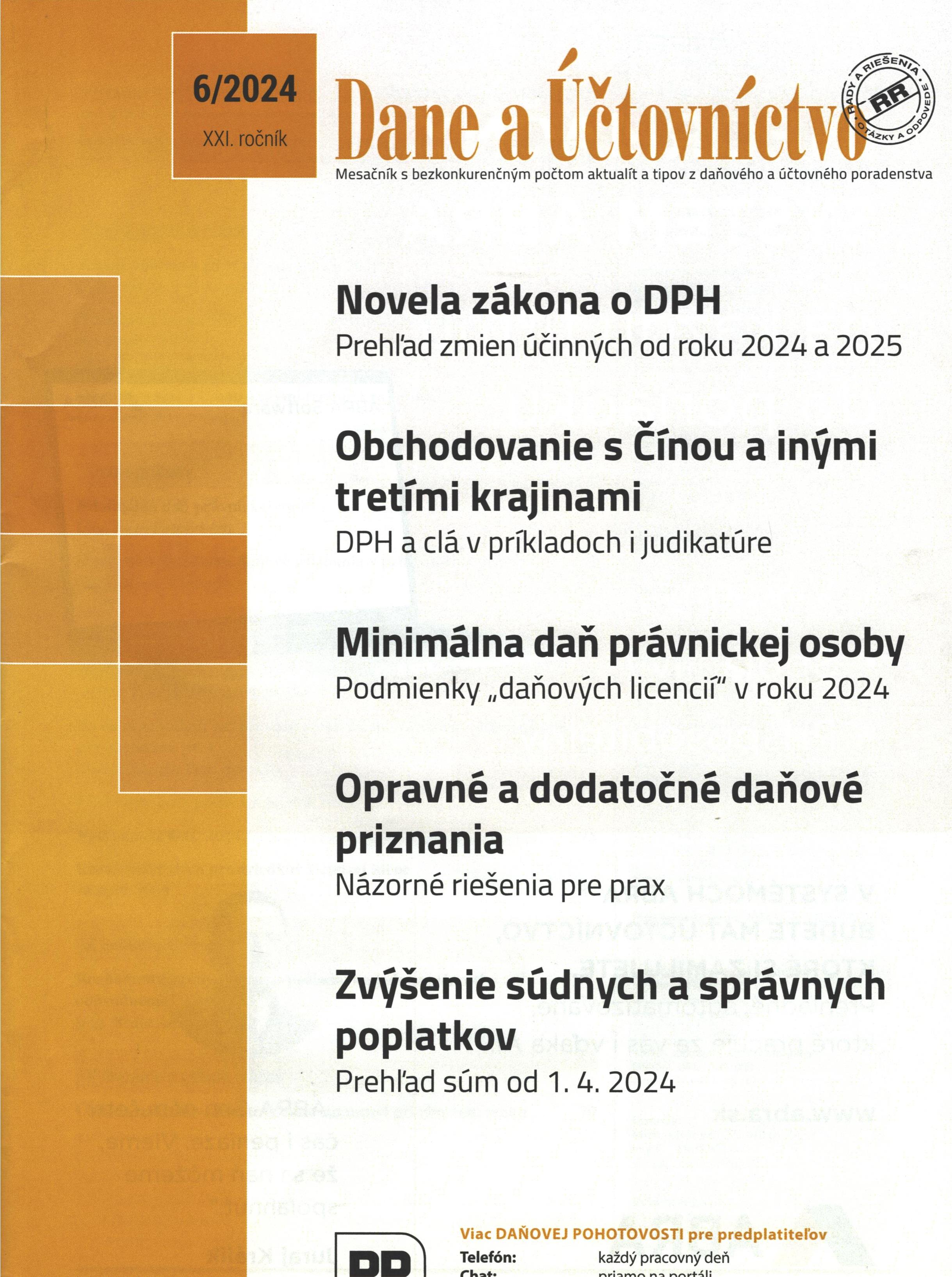 1. Dane a účtovníctvo : rady a riešenia : mesačník s bezkonkurenčným počtom aktualít a tipov z daňového a účtovného poradenstva. Žilina : Poradca podnikateľa, 2024. ISSN 1336-426X