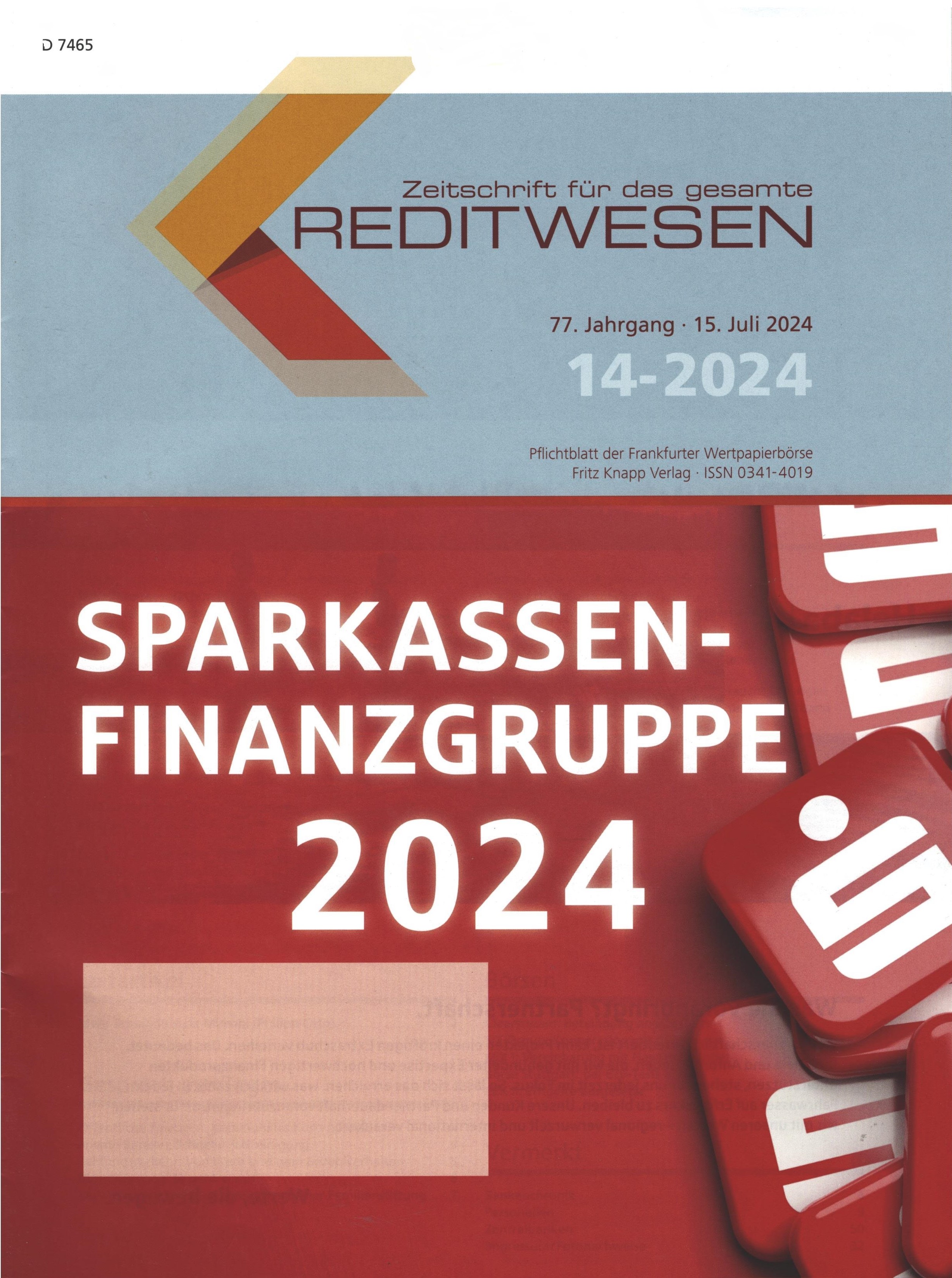 Title Zeitschrift für das gesamte Kreditwesen : Pflichtblatt der Frankfurter Wertpapierbörse Issue data Frankfurt am Main : Fritz Knapp Verlag ISSN 0341-4019 Year, No. Jg. 77, Hf. 14 (2024) Periodicals status Accepted (30.07.2024) Document kind časopisy Language German Country of Edition Germany Database PERIODIKÁ - Prijaté čísla Copy count 1, currently available 0, at library only 1 References - PERIODIKÁ - Súborný záznam periodika