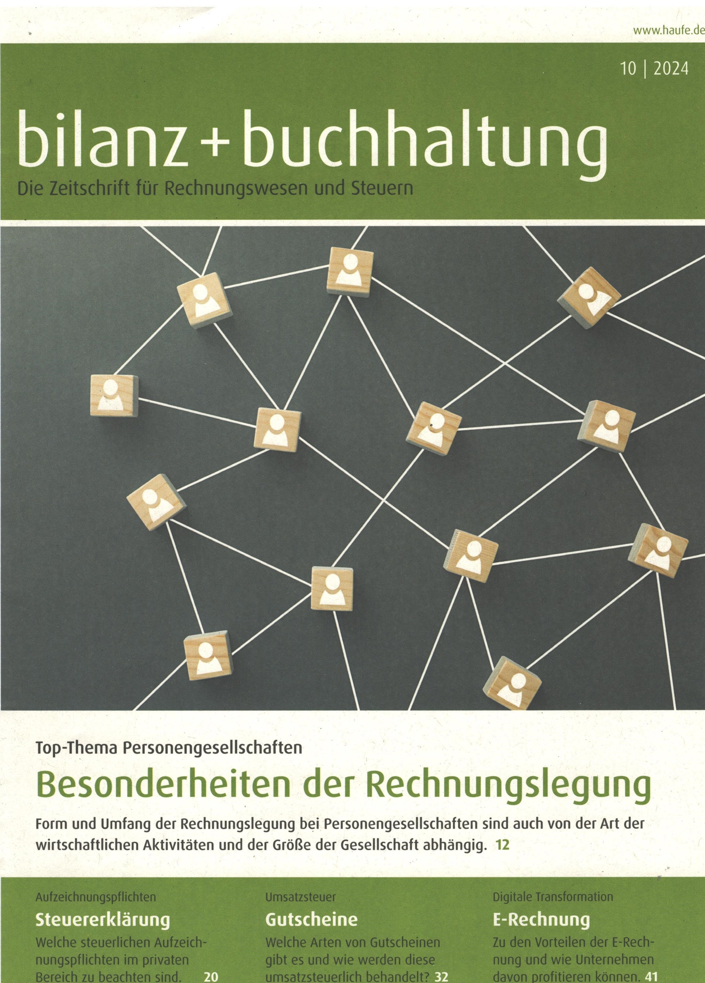 Názov Bilanz + Buchhaltung : Die Zeitschrift für Rechnungswesen und Steuern Vydavateľské údaje Freiburg : Haufe-Lexware GmbH ISSN 0930-0597 Roč., číslo Jg. 71, Hf. 10 (2024) Status periodika prijaté (21.10.2024) Druh dokumentu časopisy Jazyk dokumentu nemčina Krajina vydania Nemecko Báza dát PERIODIKÁ - Prijaté čísla Počet ex. 1, z toho voľných 0, prezenčne 1 Odkazy - PERIODIKÁ - Súborný záznam periodika