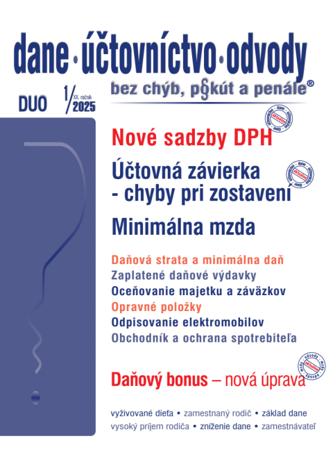 - 2025 ,č. 1. Dane - účtovníctvo - odvody : bez chýb, pokút a penále. Žilina : Poradca, 2025. ISSN 1336-7986 [Počet ex. : 1, z toho voľných 0, prezenčne 1]