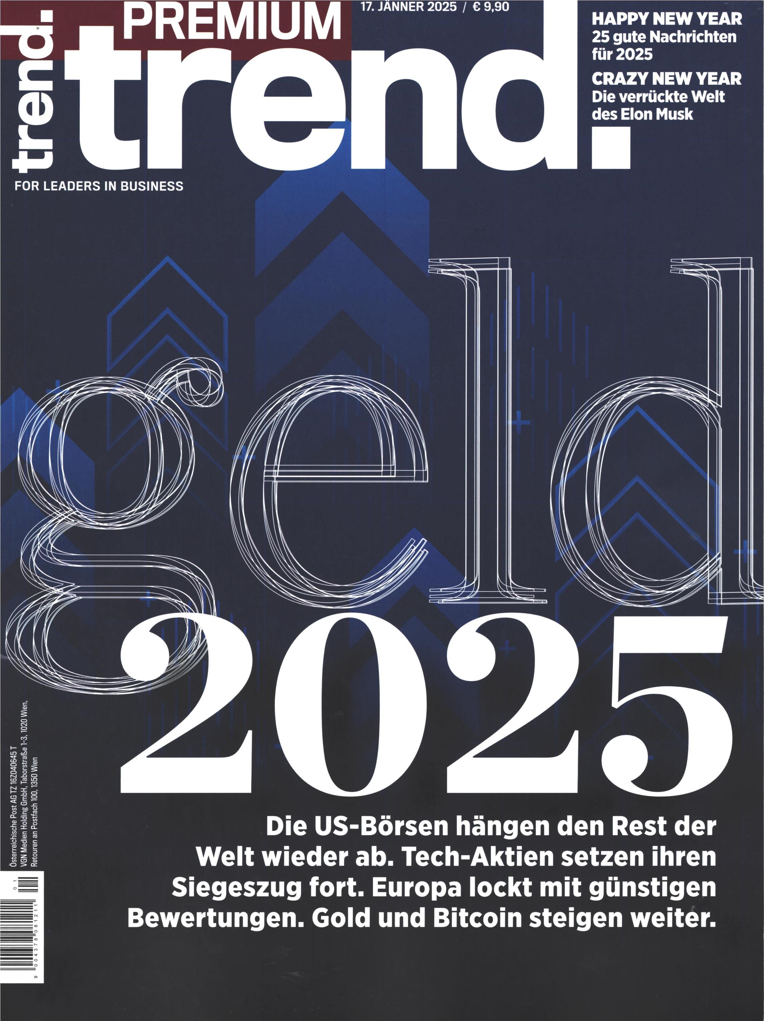 Názov Trend : Premium: For Leaders in Business Vydavateľské údaje Wien : Verlagsgruppe News ISSN 0049-4623 Roč., číslo Nr. 1 (17. Jänner 2025) Status periodika prijaté (03.02.2025) Druh dokumentu časopisy Jazyk dokumentu nemčina Krajina vydania Rakúsko Báza dát PERIODIKÁ - Prijaté čísla Počet ex. 1, z toho voľných 0, prezenčne 1 Odkazy - PERIODIKÁ - Súborný záznam periodika