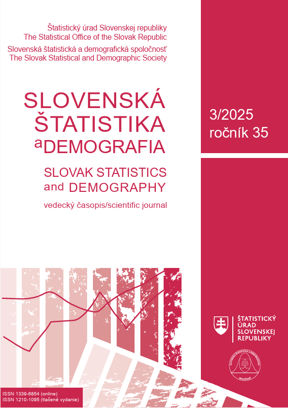 Názov Slovenská štatistika a demografia : recenzovaný vedecký časopis Súbežný názov Slovak Statistics and Demography: Scientific Reviewed Journal Vydavateľské údaje Bratislava : Slovenská štatistická a demografická spoločnosť ISSN 1339-6854 Roč., číslo Roč. 35, č. 3 (2025) Status periodika prijaté (29.07.2025) Druh dokumentu časopisy Jazyk dokumentu slovenčina Krajina vydania Slovenská republika Báza dát PERIODIKÁ - Prijaté čísla Odkazy - PERIODIKÁ - Súborný záznam periodika (2) - PUBLIKAČNÁ ČINNOSŤ